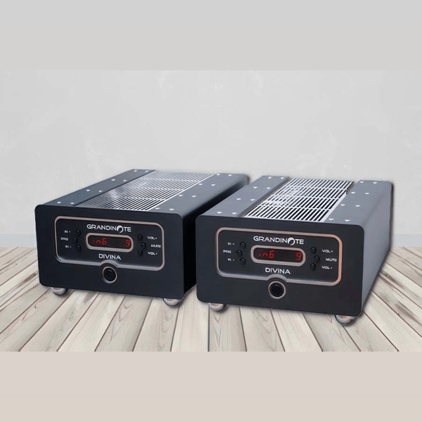 Grandinote Divina MultiCase Integrated Amplifier is the natural evolution of the acclaimed Grandinote Prestigio amplifier. The two mono-amps share volume, input, and balance informations trough the Grandinote network "AMSYNET" (AMplifiers SYstem NETwork).