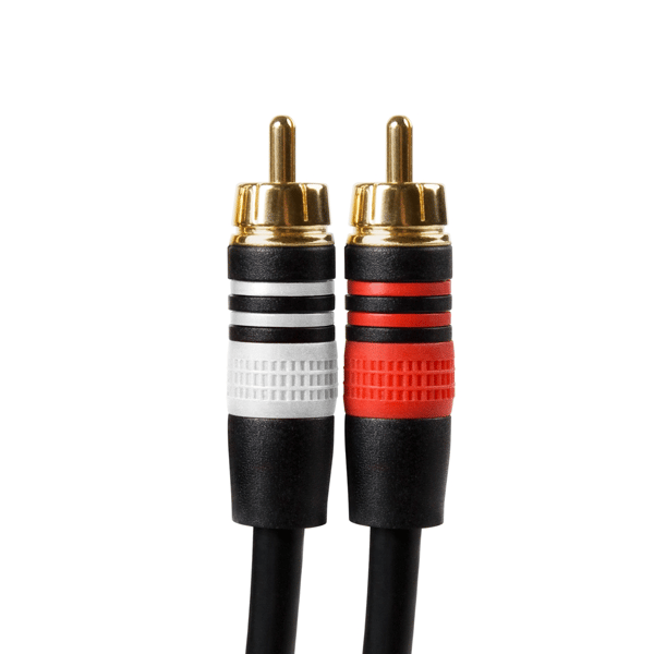 A basic RCA to RCA interconnect cable for connecting amplifiers, DACs, and other stereo equipment.