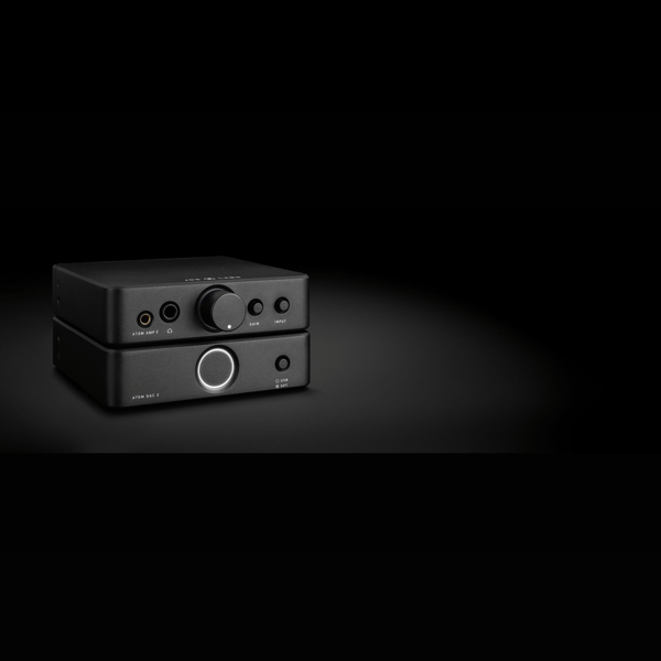 We built Atom Amp 2 for those who demand more. Atom Amp 2 is like Atom Amp+ on steroids. It's housed in an aluminum chassis with an easier to grip knob, featuring both 4.4mm and 6.35mm headphone jacks, failsafe DC protection, and octo-buffers pumping out more than twice the power of Atom Amp+. No noise. Front-mounted controls. Hand matched potentiometers. Custom engraveable. Atom Amp 2, your new go-to headphone amp. This bundle includes everything you need to get started with Atom Amp 2 and Atom DAC 2.