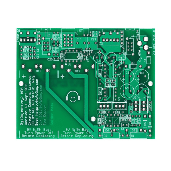 Bare printed circuit board for the Objective2 headphone amplifier. PCB is electrically tested! Objective2 is an open source amplifier designed by NwAvGuy, with emphasis on benchmark performance and low cost.