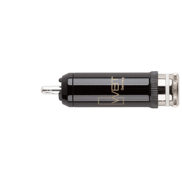For phono outputs (record players, microphones, etc.) good shielding against interference fields is particularly important. This is provided by the WBT-0102 that features the brass sleeve of higher conductivity connected to the minus pole – but otherwise is all nextgen™. (75 ohms up to 200 MHz) Utilizes pure silver contacts.