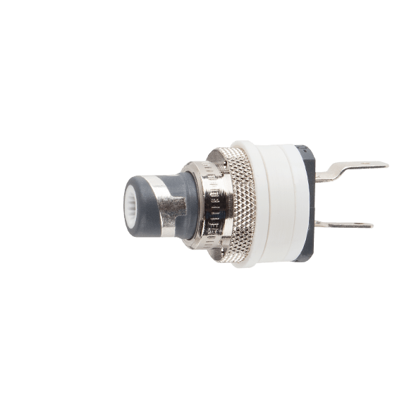 The Highest quality socket available on the market, with Pure Fine Silver contacts for both positive and negative connections. A single layer of Platinum plating protects each external contact against tarnish. The positive contact utilizes a tulip tri-shape design that is spring loaded to assure a secure connection. The main body is comprised of 30% glass reinforced Ultramid® with the ground (negative) contact embedded within the connector. The complete unit includes insulation washers to accommodate a panel thickness from 0.1 - 4.2mm.