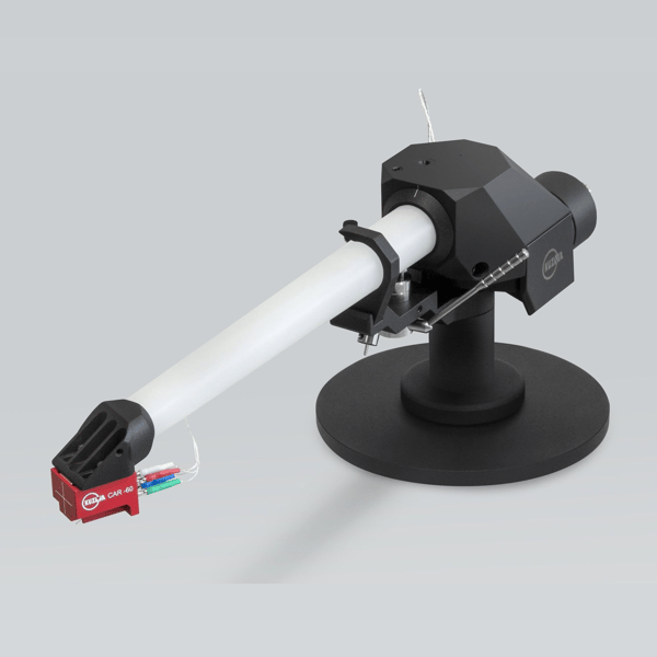 The tonearm is fixed on the turntable arm board via the Kuzma arm base. VTA is adjusted by raising or lowering the tonearm’s pillar in the arm base with a VTA screw which controls its height, thus still allowing precise VTA changes when required.