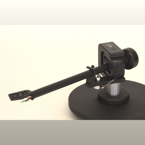 A decoupled brass counterweight controls balance and adjusts tracking force, while damping vibration in the tube. The massive arm base serves to clamp the tonearm rigidly to the armboard. All bearings are pre-loaded and glued into position which, while damping vibrations in them, also provides long lasting, zero play, low friction and low noise level in the bearings. VTA adjustment is made by raising or lowering the tonearm in the arm base itself.