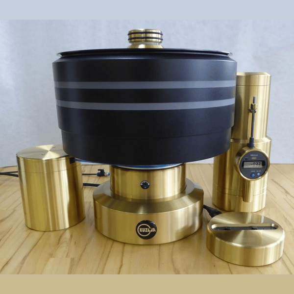 Total mass of rotating platter is 44 kg making it more imune to cartridge drag which slows down any platter regardlessof mass and drive. The top platter- same as in XL DC turntable ( 22 kg) is a sandwich construction of aluminium and acrylic plates screwed together in a pre-stressed form to damp all unwanted vibration. Lower bronze platter ( 22kg) is cast and gives good damping properites.