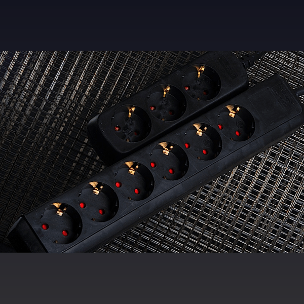 No filtering, no magic, just the best distribution blocks that allow the plug to be turned 180 degree to select the best mains phase polarity for each component. 3 or 6 outlets