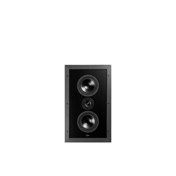 The D-60 is equipped with a more powerful soft dome tweeter compared to the D-500 in-wall speaker, featuring a much stronger magnet. The two 18cm / 7-inch aluminum midrange drivers are equipped with vented magnets and vented die-cast baskets, while the inverted surround allows a flat speaker front and space-saving cabinet depth. With the D-60, one no longer has to choose between high-performance and a discreet physical presence.