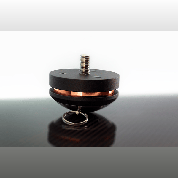 Prior to installation the top and bottom halves of the MPOD are held apart by a center spindle and pull-pin. Once the MPOD is installed the removal of the pull-pin engages the CLD properties of the MPOD. Once the pin is removed, no hardware is connected between the top and bottom part of the MPOD, effectively “floating” the component placed on it. The results: increased resolution, more focused imaging and improved soundstage.