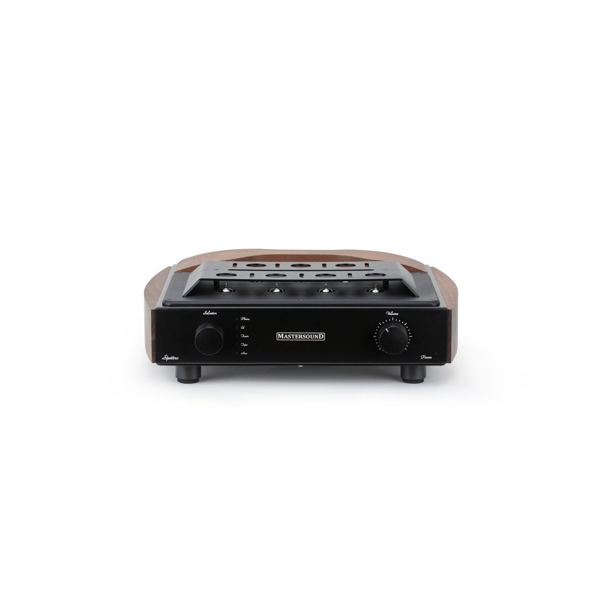 Derived from the "PHL5", the "Spettro" expresses the maximum in tube preamplification. Inside, no integrated circuit is used, everything has been designed to state-of-the-art standards. Inside the "Spettro" there are a pair of parallel preamplifiers per channel (Dual Drive System) with the intent of halving the output impedance and thus obtaining an audio signal of truly surprising speed and dynamics. The final amplifiers driven by this preamplifier can truly express all their potential. Between the phono stage and the line stage, there are 7 dual triodes and all components are highly selected and custom-made. The power transformer was designed and manufactured in our laboratories. The latest edition encompasses all the improvements made to the circuit over the years, with a new PCB board and an analog signal filtering system that allows for greater signal cleanliness and transparency.