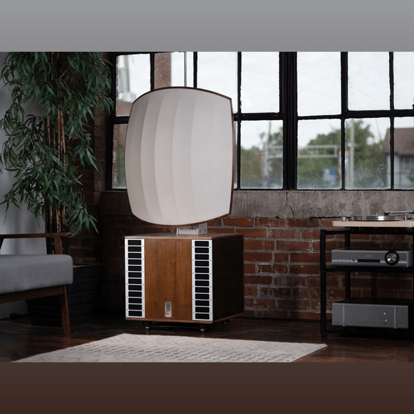 Our original high-performance loudspeaker, the Forty-10 is a unique product, both from a technical and visual standpoint. This product combines room filling sound and ultra efficiency. The Forty-10 device has two separate cabinets. The upper enclosure has 10 of our WBLS Broad Band Drivers in a curved array. The lower cabinet handles the bass with large woofers. An Outboard hybrid crossover handles the integration of the two cabinets. The dispersion is unbelievable, and the frequency extension covers all music and movie material. This legacy product is available on special order and is priced at $65,000.