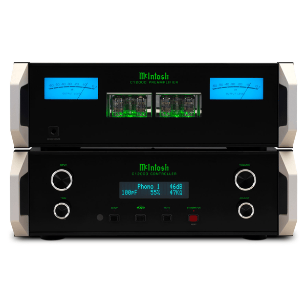 With classic McIntosh black glass front panels, blue meters, knobs, stainless steel chassis, illuminated logos, and custom machined brushed aluminum handles, the C12000 makes a visual statement in addition to its audio prowess. It can be paired with a variety of McIntosh amplifiersspeakersroom correction devicesCD playersturntablestunersmedia streamers and other source components to make a complete home audio system. Contact your local dealer to learn more.