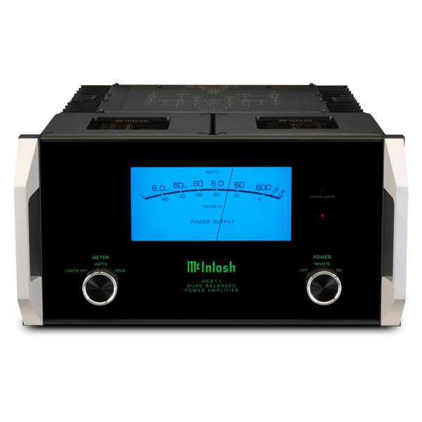 The MC611 sits on a beautiful polished stainless steel chassis and features the timeless McIntosh aesthetic of a black glass front panel, illuminated logo, control knobs, aluminum handles and of course a large 8” (20.3 cm) fast responding blue Watt meter. Contact your local dealer to learn more.