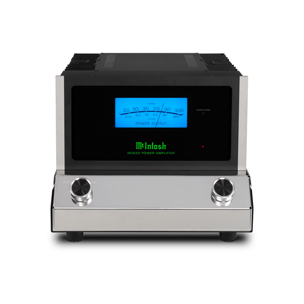 A die cast aluminum name badge is affixed to each side of the chassis, and the front, top and rear of the chassis is polished to a mirror finish. The MC830 features a black glass front panel with silver trim, a blue Watt meter, an illuminated logo, and control knobs. Contact your local dealer to learn more.