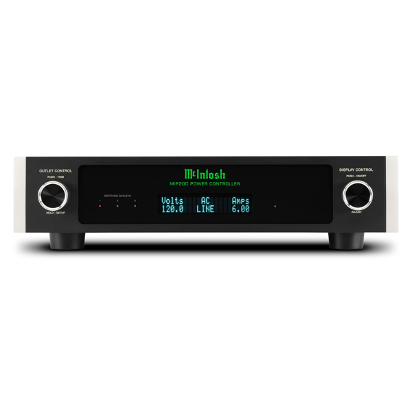 The MIP200's front panel AC line monitor provides real-time data on input voltage, current draw, and total apparent power, offering peace of mind and precision control. Encased in the iconic McIntosh black glass front panel with aluminum trim, illuminated logo, and aluminum control knobs, the MIP200 exudes luxury and sophistication. Contact your local McIntosh dealer to discover how the MIP200 can protect your home audio or home theater system.