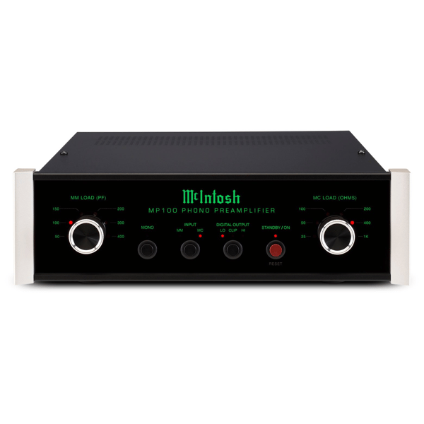 Like all McIntosh products, the MP100 is packed with features designed specifically for the vinyl lover including: Moving Coil and Moving Magnet inputs; Moving Coil and Moving Magnet adjustable loading (6 settings each); balanced and unbalanced analog outputs; optical, coax and USB digital outputs; and a Mono switch for when playing mono records to decrease noise and play the signal correctly. For pure analog use, the digital outputs can be completely disabled and powered down.