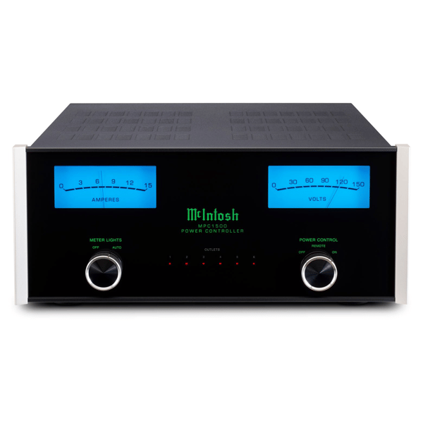 Our blue Watt meters have been repurposed to show the real time incoming voltage and the actual current draw of the connected devices. The meters will be scaled to the correct amperage and voltage based on the local country (e.g. the voltage meter will be scaled to 250 for countries that use the Type F receptacle). Regardless if the unit has Type B or Type F receptacles, all versions of the MPC1500 feature the timeless McIntosh black glass front panel with blue meters, an illuminated logo, control knobs, and aluminum end caps. Contact your local dealer to learn more.