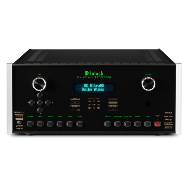 The MX123 A/V Processor marries a long tradition of uncompromising McIntosh sound quality with the latest home theater technologies to bring you an unsurpassed luxury home entertainment experience. The MX123 supports 8K/60Hz and 4K/120Hz resolutions and refresh rates. It can also upscale lower resolutions to 8K to produce the best possible picture quality.