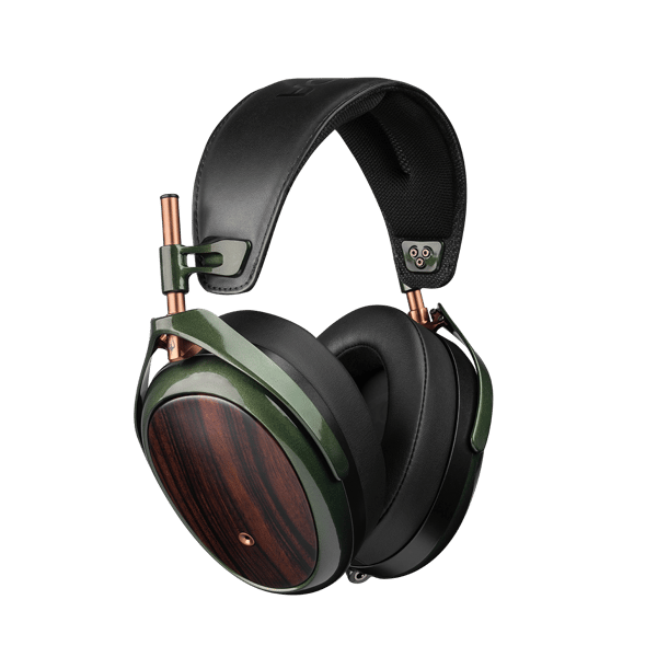 The ear cups are adorned in Macassar ebony – a heavy, dense, and aesthetically pleasing hardwood known for its deep, rich brown coloration punctuated by intricate golden-brown stripes.