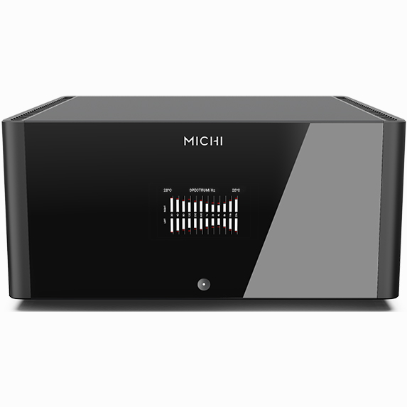 The Michi S5 Stereo Amplifier delivers 500 watts per channel into 8 ohms loads with best in class audio performance. The dual monoblock design includes twin, oversized, in-house manufactured toroidal transformers for exceptional bass energy while maintaining control and precision of the finest detail all packaged in an elegant design.