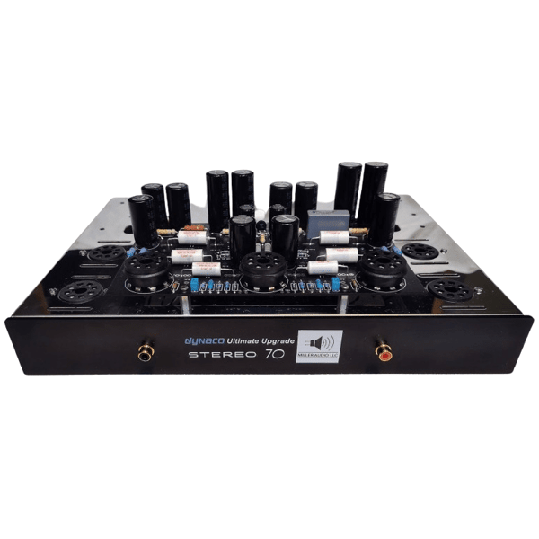 Our Face Plate is custom machined from 6100 series Aluminum sheet that is 0.125 inches (~ 3 mm) thick and features pre-drilled holes in the Face Plate for female RCA panel jacks, which are now moved outward from the original center location of the chassis face to the center-point of the front octal socket locations. This eliminates the need to upgrade the RCA jack panel Dynaco originally used at the center of the original chassis face, providing ample space for any audio signal cable with large RCA fittings.