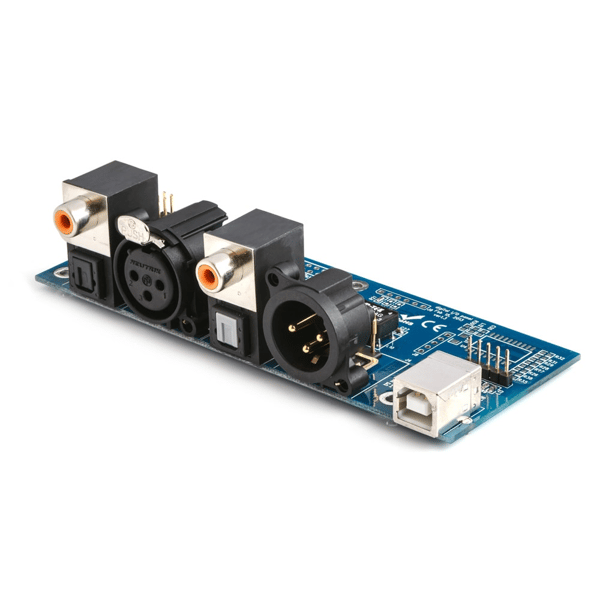 The DIGI-FP is an SPDIF/Toslink/AES-EBU to I2S interface providing digital audio input & output connectivity for miniDSP 2x8/8x8/miniSHARC kits. Based on the awardwinning TI/Burr & Brown IC (SRC4382), the board is compatible with miniDSP 2x8/8x8 and miniSHARC platform. Source selection and correct sample rate are automatically configured from the miniDSP 2x8/8x8 platforms. A USB connector is provided for easy front panel configuration and connectivity to the main board. This USB connection is for control only (no audio streaming).