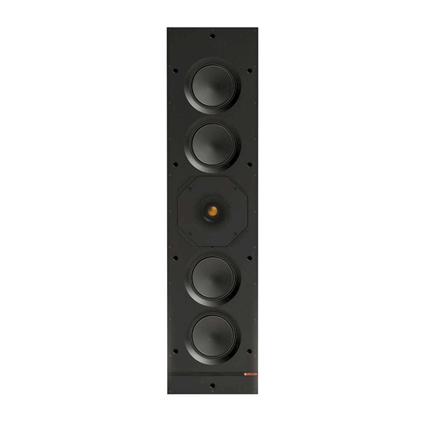 This large-sized Tier 1 in-wall loudspeaker is designed for cost-effective installations, where product simplicity and solid acoustic performance are required. It is a two-way model featuring four C-CAM mid-bass drivers and a C-CAM tweeter. The performance benefit of having both within a single design means greatly improved clarity, wider dispersion into the listening environment, and clear, lifelike, high-fidelity sound—of the quality you’d expect from any Monitor Audio passive box loudspeaker. It has a cut-out dimension of 880 x 202 mm and uses the Quik-Link speaker cable connector, which revolutionises the ease and speed of speaker installation. Tri-Grip has also evolved for simple, reliable, and strong fitment.