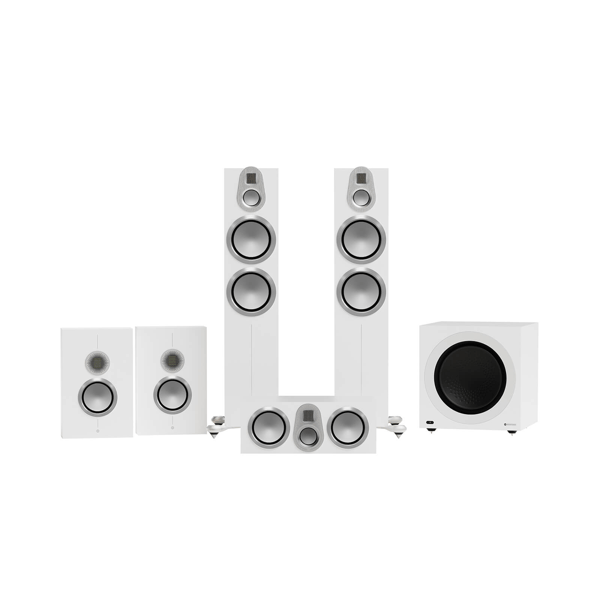 Providing massive sonic capability, the Gold 500 6G 5.1 System enables users to hear every, single, nuance and feel every impactful event within a movie soundtrack. Made up of two formidable Gold 500 6G floorstanders in front left and right channels, a Gold C250 6G centre channel, two Gold On-Wall 6G side effect speakers, and the powerful Anthra W15 subwoofer. You’ll be at the very heart of the action on screen.