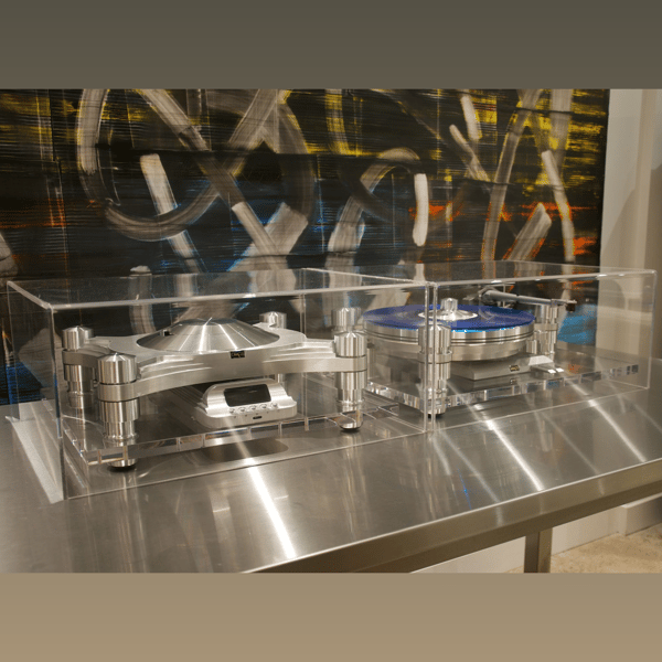 The full acrylic dustcover covers the whole unit all the way down to the support table. The rear is fully open to allow room for the audio and power cables. These full dustcovers are sold seperately as an accessory like our regular dustcovers and greatly help protect your praised Oracle components from dust.