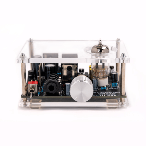 The OA-JC5 is a hybrid headphone amplifier equipped with a traditional 12AU7 vacuum tube in the preamp stage and 2SA1943 and 2SC5200 transistors in the output stage. This design combines the warmth of vacuum tubes with the precision of transistors to provide a rich and clear sound experience. The subtle glow of the filaments and the blue LED indicator lights enhance the immersive feel, deepening your connection to the music.