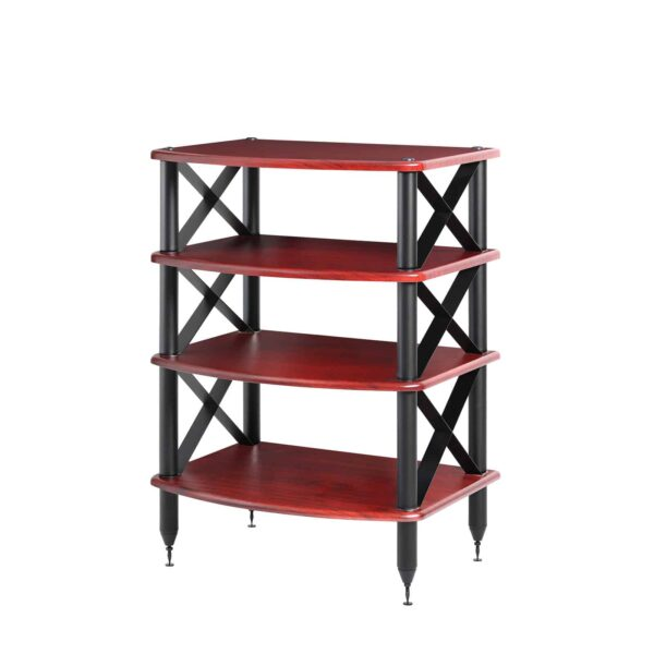Introducing Pangea Audio’s new Vulcan X-Brace high-end audio component rack. This new rack preserves the outstanding qualities of the original Vulcan Audio Rack series, including modular design, interchangeable shelf location, and fast, friendly tool-less assembly. Additionally, the X-Brace offers increased strength and rigidity. It looks strong and sturdy, and it is! Shelves are rated for 90 lbs. load each and 360 lbs. total for the entire four-shelf rack.