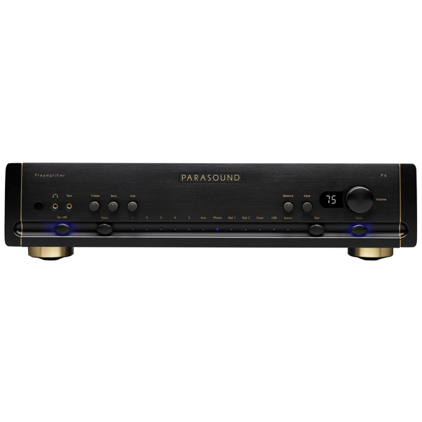 Designed as a true 2.1‑channel control center, the P6 adds the pieces most systems are missing: an ESS Sabre32 Reference DAC (ES9018K2M) with USB up to 384 kHz/32‑bit and native DSD64/128/256coax/optical 192/24, fully analog bass management with independent high‑pass/low‑pass crossovers and front‑panel sub level, MM/MC/MI phono (100 Ω or 47 kΩ), balanced XLR inputbalanced & RCA pre‑outs, plus XLR + dual RCA sub outs. It also uses a resistor‑ladder volume control for fine, low‑noise steps, includes a high‑current TI TPA6120 headphone amp, and offers Home Theater Bypass for seamless 2‑channel + surround integration.