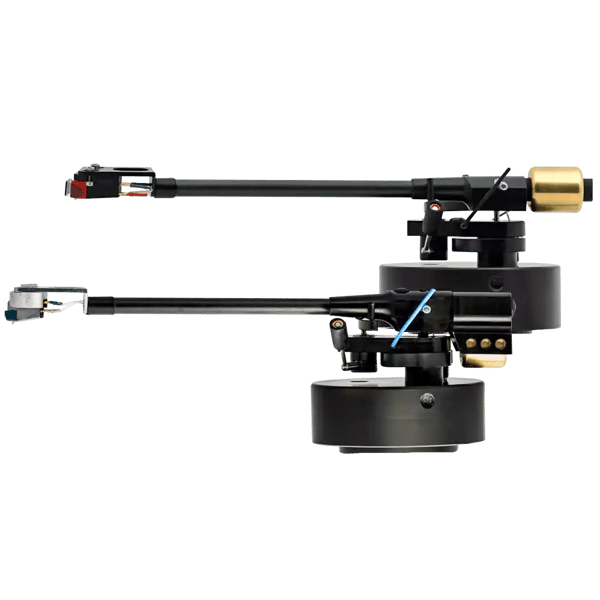 Cornet 1 and Cornet 2 tone-arms are the culmination of the Tom Fletcher’s continuing development of the Space Arm. Unipivot arms are usually designed with the pivot sitting in a silicone bath. The problem with this design is that the silicone bath takes quite a while to settle down, so the sound of the arm changes as it plays. Many unipivots uses eccentric counter weights to insure proper azimuth.