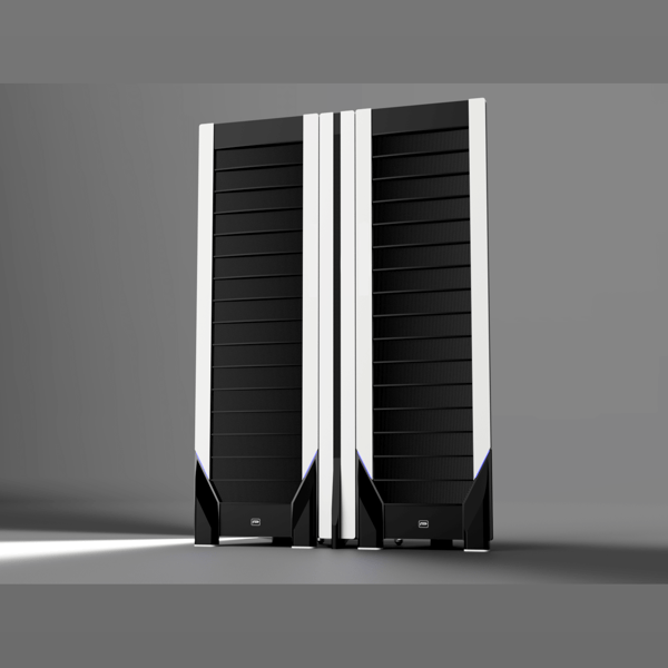 Two-Way Electrostatic Speaker with additional mid-/high range and bass electrostatic panel (three-piece unit per channel)