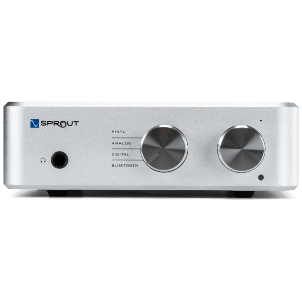 Sprout represents our vision of a simple, elegant means of playing music at home. We created it for those of us who want quality sound without the hassles that sometimes come with it. Sprout features a phono preamplifier for vinyl, a Bluetooth receiver for music streamed from smartphones, a high-quality hi-res DAC to handle anything stored on a computer, enough power for any speaker, and a headphone amp that drives even the toughest loads. Roughly the size of a large novel, Sprout100 is a source of music for those who want quality sound without the hassles that come with it.