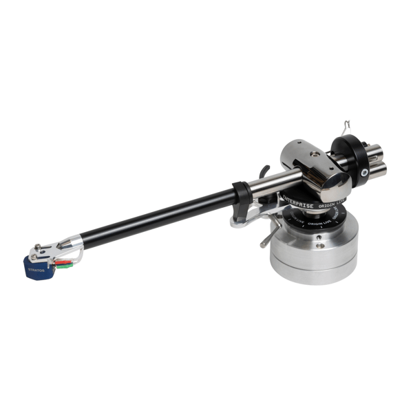 Aircraft alloy/carbon fibre arm tube. Every tonearm needs to hold your cartridge steady, free from any extraneous resonance or reflected vibration. The Enterprise Mk4 succeeds brilliantly with a high-grade aircraft alloy tube, stiffened with carbon fibre and further processed to defeat resonance. This frees up the cartridge to perform as it should, protected from the coloration of resonance and reflected vibration.Larger-diameter, higher-strength, sleeved rear stub. This maximizes energy dissipation and improves counterweight stability, further protecting the cartridge from resonance.Damped counterweight attachment. While the counterweight attachment holds the arm tube firmly, it’s also decoupled to minimize energy reflection back down the tube. High grade materials and a special dampening contribute to clearly audible improvement.Counterweight fine adjuster enables you to set highly precise tracking force.Headshell features improved de-coupling and lightweight finger-lift.Sophisticated yoke decoupling further protects the music from resonance with several layers of isolation from the vertical bearings.Dual Pivot Bearings. The Enterprise Mk4 provides a high-specification ceramic bearing to control tonearm motion on the horizontal axis. But vertical motion confronts designers with a daunting set of choices. Uni-pivot bearings offer extremely low friction, along with excellent definition and transparency. But their relative instability degrades bass performance. They can also be fiddly to set up and wobbly to cue. Some uni-pivot arms can literally be “knocked off their bearing.” To achieve the sonic benefits without all these limitations, Origin Live uses a pair of precisely rounded, ultra-hard tungsten carbide points held by gravity in a pair of radiused burnished steel cups. This allows the arm a tiny degree of motion in every direction except down. Gravity self-centers the points, sliding them into the bottom of the cups. As a result, vertical tonearm motion is incredibly smooth, with vanishingly low friction. Music is open and transparent, achieving the superb definition of uni-pivot arms, but without sacrificing bass. In addition, the arm is extremely robust. You can even hold it upside-down and nothing will fall off.Ceramic ball bearings for horizontal movement achieve phenomenal precision for ultra-low friction, smooth tracking.Mirror-finished yoke is coated in highly durable Chrome Nitride by the same supplier that serves the watch maker, Rolex.Precise vertical tracking angle adjustment. A large, calibrated dial above the arm-board gives you easily-accessible, total control over VTA.Azimuth AdjustmentFalling weight side bias. Compared to many other approaches, this classic anti-skate design reduces friction, reduces resonance and increases stability.Internal Silver Hybrid wire uses a version of Origin Live’s acclaimed cable, combining silver wires configured together with copper Litz wires laid up in an advanced configuration. Cryogenic freezing reduces discontinuities in the conductors.Silver-plated headshell clips. Slightly outperform gold.Silver Hybrid external cable. The supplied 1-metre cable again combines cryogenically frozen silver with copper Litz wire for impeccable musicality.Rhodium-plated single point RCA plugs. Single point contact reduces eddy currents while Rhodium provides an ultra-smooth surface for reliable contact.