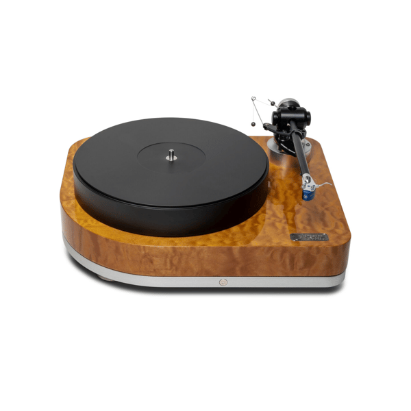 Custom configurations. You can configure the turntable with or without one of the tonearms we offer. You can select it with or without our Stratos MC cartridge.Choice of lustrous finishes. Try as we might, our photography never quite captures the lustre, depth and romance of our available finishes. Choose from our two standard finishes: either Semi-Gloss Santos Rosewood or Dark Walnut. Or step up to a premium finish: High Gloss Quilted Maple or Piano Black.Dimensions and weight. 17” wide x 14” deep x 7.5” average height (430 x 355 x 190 mm) and weighs 43 lbs. (19.5 kg).