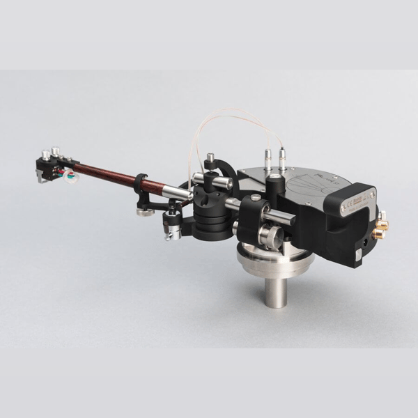 Arm tube suspension system is similar to one used in Reed 2G tonearm, and the tonearm’s turning part is based on low noise thrust-sleeve bearing. For angular rotation of tonearm we designed and built limited rotation sectional torque motor. Tonearm’s position is controlled by laser and linear sensor array.
