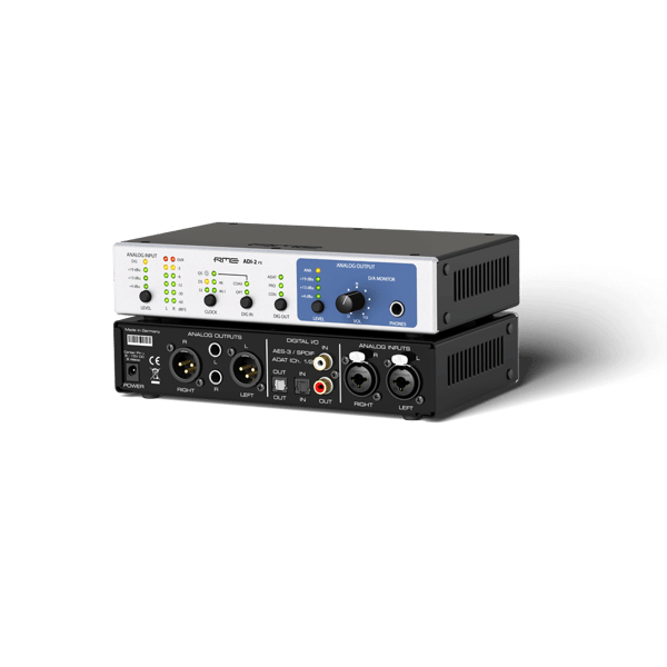 But the ADI-2 has more to offer than tremendous sound. It also provides exciting digital connectivity. Its coaxial RCA SPDIF I/O has a switchable Channel Status to make it fully AES/EBU compatible (cable adapter required). The optical TOSLINK I/Os can handle up to 192 kHz and also serve as ADAT I/O, even at 192 kHz. An operation with SPDIF input and ADAT output or vice versa is supported, in both AD/DA and D-D mode.