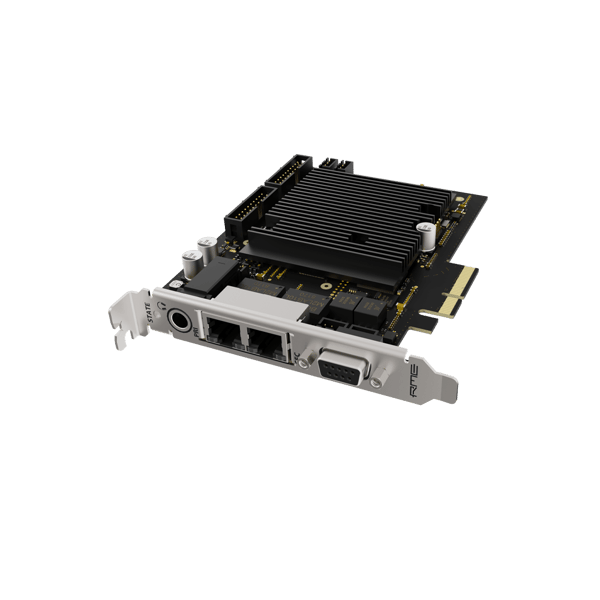 The HDSPe AoX PCIe x4 audio interface cards combine dual network ports with headphone output, AES3, MIDI, and internal expansion headers for up to four MADI ports. Whether used in a Thunderbolt™ expansion chassis or built into DAWs or audio processors, these cards send and receive up to 512 channels of audio and provide numerous mixing and routing capabilities.
