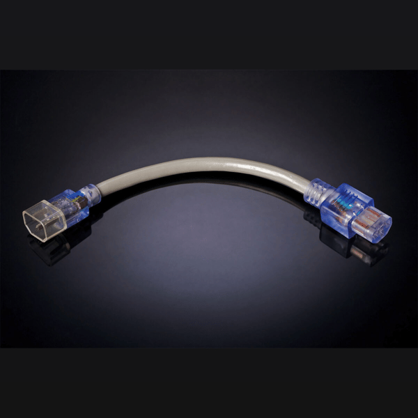 This is a short cable that allows a large high performance cable to be connected to electronics with oddly located inlets or difficult cable routing within cabinets.