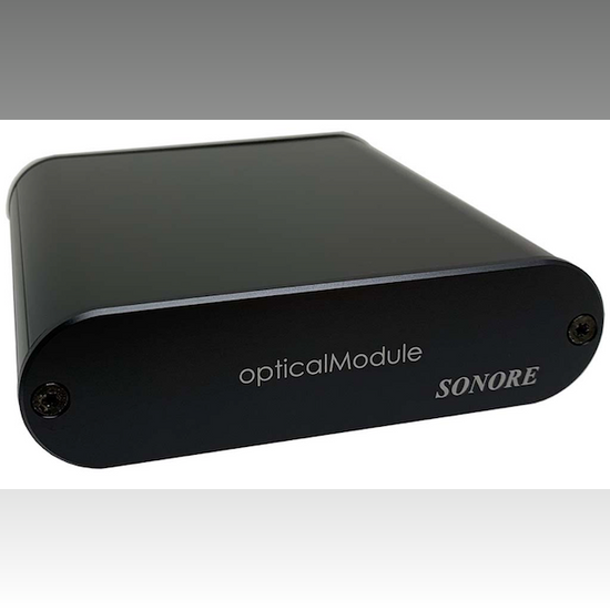 The Sonore opticalModule Deluxe is a bi-directional fiber media converter or FMC. The opticalModule has an SFP fiber optic transceiver and an RJ45 connector on the same side. The unit can be used to add fiber-optic networking to your existing wired network or convert your existing fiber optic network to a wired network. The unit can be used with all Sonore products or any other network server or endpoint.