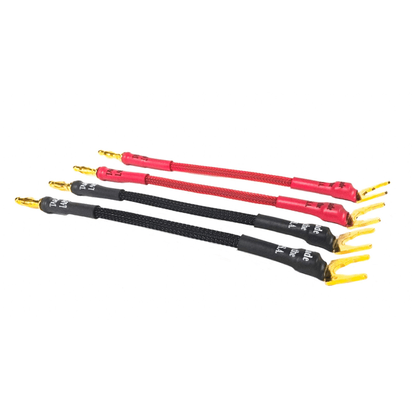 Apollo speaker links are all custom hand-crafted in Oregon, USA. They are available with either soldered on spades or bananas. Used between binding posts on speakers that require links between the top and bottom posts. Two positive and two negative runs per set.