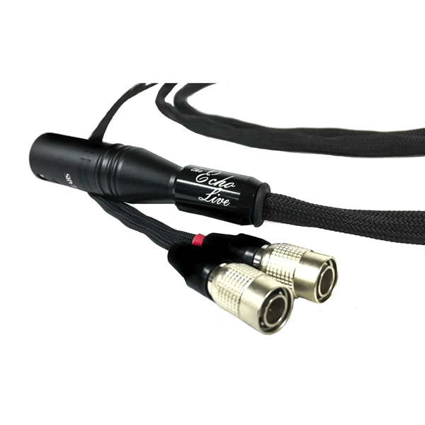 The Echo Live is available with a wide variety of termination options and custom lengths that are compatible with most headphone manufacturers world-wide. The standard length is 2.4 meters/8ft. and is terminated with gold plated 4 pin balanced XLR male connector on the source end and can be terminated with either a gold plated 3.5mm stereo mini or a gold-plated ¼” stereo phono adapter on the source side. The Echo Live is carefully constructed to eliminate any transient triboelectric noise within the cables construction, as well as their ability to dampen. In addition, our customized geometric construction has virtually eliminated internal micro-phonics as well as any triboelectric noise.