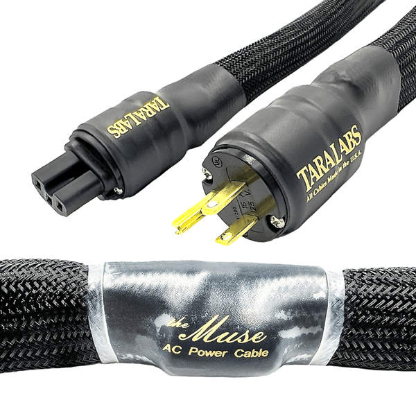 The Muse AC power cable has two 17 gauge insulated wire conductor runs that interstice the 34 (RSC) Rectangular Solid Core copper conductors with number3 RSC helixed in and around Teflon® air-tubes™. Each neutral run is dual shielded with anti-Corrosion coated SA-OF8N® silver covered copper braid. Ceralex capsules to eliminate EMI/RF interference is included.