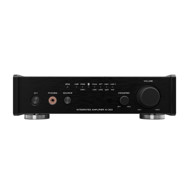 TEAC products are56 (11.2 MHz) native playback and pulse-code modulation (PCM) 384kHz/32-bit high-resolution so built by and for audiophiles. The AI-303’s ESS Saber 32-bit digital-to-analog convertor (DAC) allows for DSD2und sources. With full MQA decoder built-in, your highest res file formats such as FLAC and WAV will playback with all the quality and depth of the original recording.