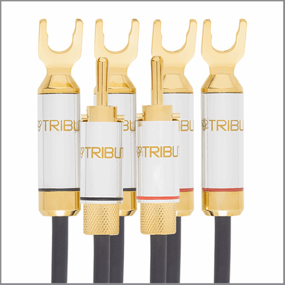 All Series 8 audio cables are meticulously assembled by hand in Orlando, Florida. Series 8 Mark II Bi-Wire speaker cables begin with extremely high-grade linear crystal copper (LC-OFC) developed specifically for audio applications. Tributaries LC-OFC is carefully drawn to produce a low crystal volume per foot resulting in less signal loss and distortion. Conductors consist of multiple solid gauges that are mathematically and tonally chosen to support low, mid and high frequencies for a natural sounding cable. Individually insulating each conductor yields zero strand interaction and better sound quality. It is important to understand that music passing through the speaker cable, is actually an AC voltage, so when voltage passes through twisted wire, there will be additional magnetic fields. Tributaries Star-Quad design not only alternates the positive and negative signal conductors but also alternates the twisted lays in each multi-gauge conductor. Alternating lays cancels all levels of magnetic distortion. The Mark II cables are silver soldered onto proprietary spade lugs and locking banana plug connectors made with Tellurium (TE) copper increasing conductivity and strength. The end result is a dead-quiet neutral sounding cable that accurately produces the sound of live music