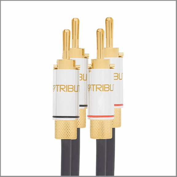 All Series 8 audio cables are meticulously assembled by hand in Orlando, Florida. Series 8 Mark II Star-Quad speaker cables begin with extremely high-grade linear crystal copper (LC-OFC) developed specifically for audio applications. Tributaries LC-OFC is carefully drawn to produce a low crystal volume per foot resulting in less signal loss and distortion. 11AWG conductors consist of multiple solid gauges that are mathematically and tonally chosen to support low, mid and high frequencies for a natural sounding cable. Individually insulating each conductor yields zero strand interaction and better sound quality. It is important to understand that music passing through the speaker cable, is actually an AC voltage, so when voltage passes through twisted wire, there will be additional magnetic fields. Tributaries Star-Quad design not only alternates the positive and negative signal conductors but also alternates the twisted lays in each multi-gauge conductor. Alternating lays cancels all levels of magnetic distortion. The Mark II cables are silver soldered onto proprietary spade lugs and locking banana plug connectors made with Tellurium (TE) copper increasing conductivity and strength. The end result is a dead-quiet neutral sounding cable that accurately produces the sound of live music