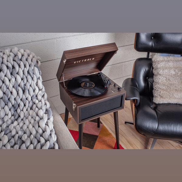The Victrola Liberty Bluetooth Record Player features legs that can turn it into a stylish accent piece or remove them to use as a tabletop record player. With vintage looks & modern technology, The Liberty is a perfect choice for music enthusiasts.