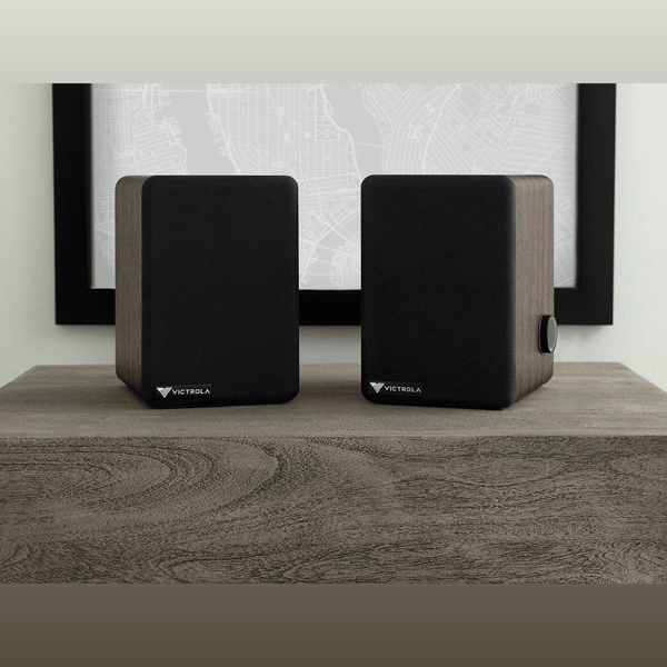 The Victrola Premiere M1 Bookshelf Monitors are sonically designed to complement the Victrola Premiere T1 Turntable for a vinyl listening experience that will take your collection to new highs. As a stand-alone bookshelf speaker system, wirelessly stream your favorite tunes via Bluetooth® technology from your device.