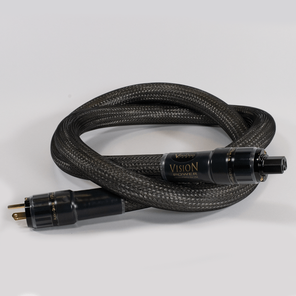 The Vision Power AC Powercord is designed to provide high current to solid state and tube amplifiers and power conditioners. The new helical #8 AWG conductor geometry offers vivid imaging and transparency with accurate dynamic control. The Vision Power is a hand-built power cord with the cryogenically treated PowerPhase Gold-plated Tellurium Copper IEC Connector and AC Plug. Each of the high-purity silver-plated copper conductors is wound in a proprietary geometric design. Each strand within the lay of the conductors is individually insulated with velocity-matched Teflon dielectric insulation. The Vision Power is 100% protected from invasive EMI and RFI with heavy-gauge copper braid shield. The power cord body is sheathed with double layers of abrasion resistant mesh sleeve for maximum durability and optimal flexibility. All of the wire and connectors used to build the Vision Power are treated in our custom Cold FusionTM deep-immersion cryogenic process at -315 Fahrenheit (-192 Celsius) to structurally align and fuse the molecular structure of the conductive alloys for lower resistance and significantly less line noise for optimal sonic performance. The power cord body is sheathed with abrasion resistant polyethylene mesh sleeve for maximum durability and optimal flexibility. Available in lengths 3 ft to 10ft.
